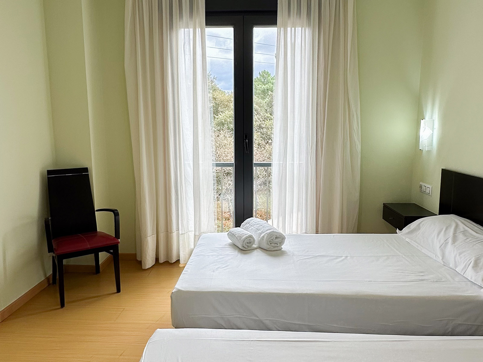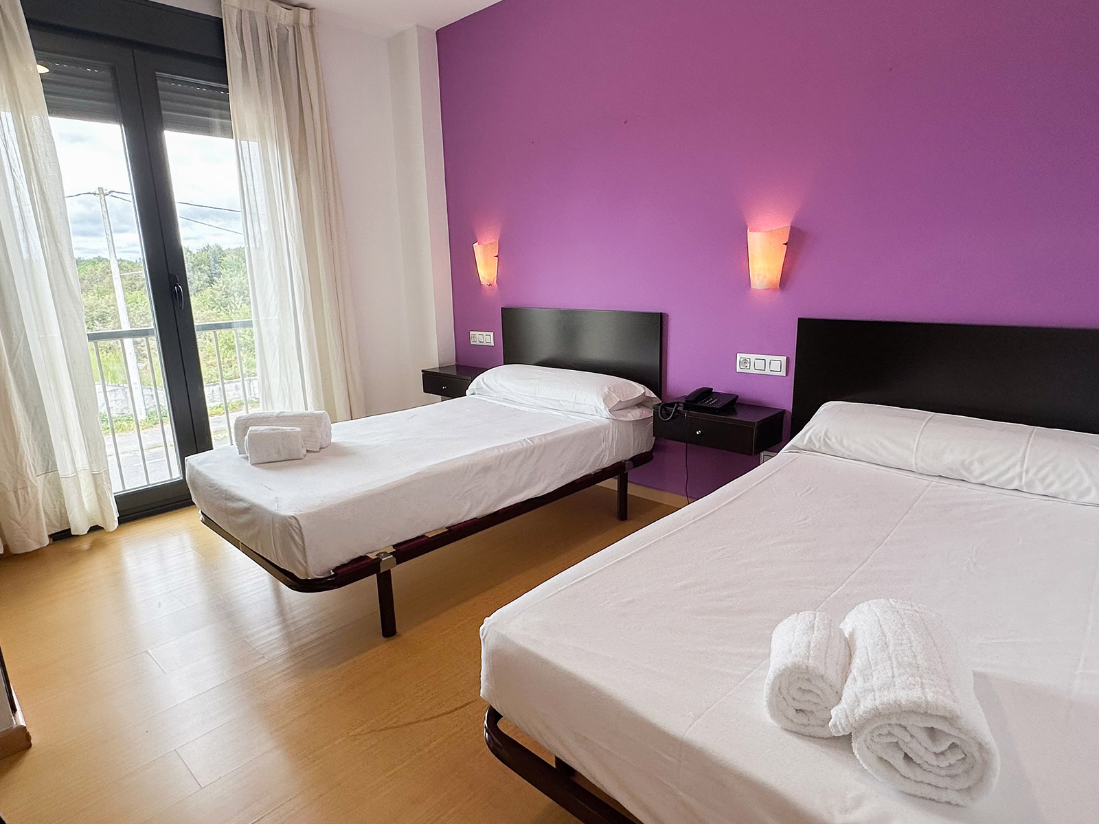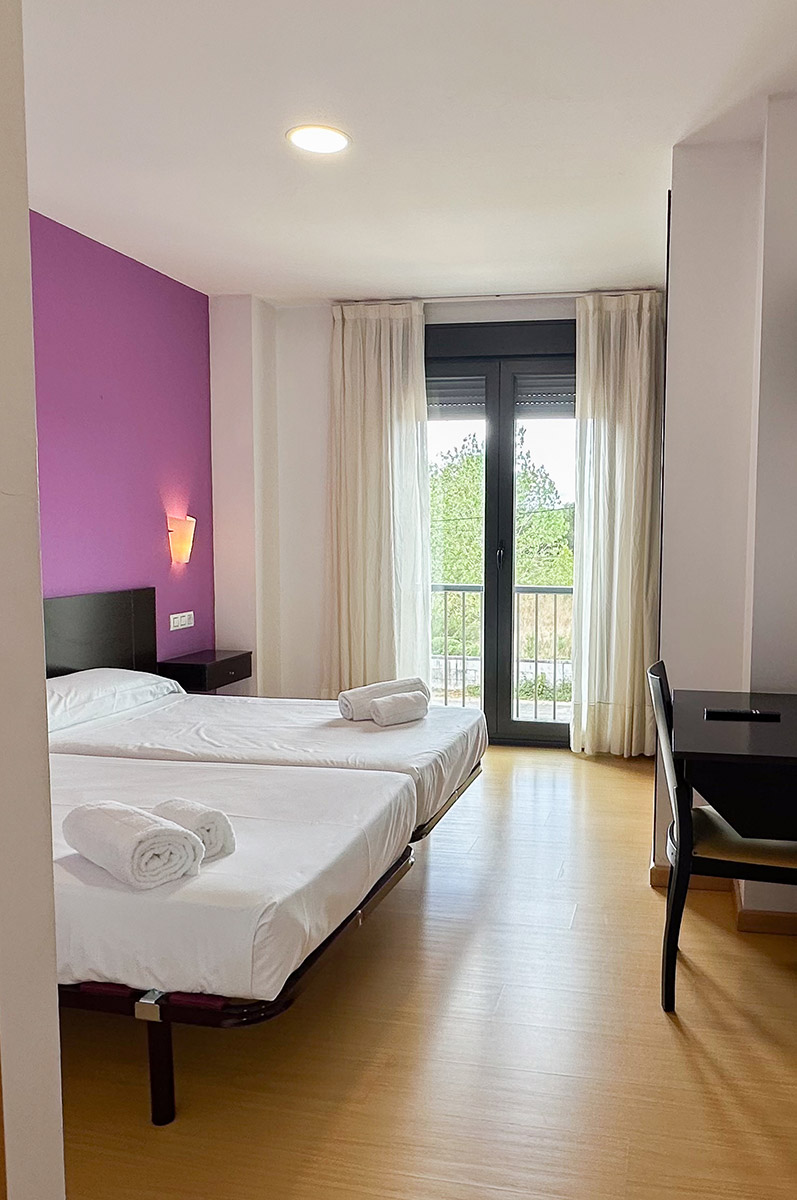 Ofrecemos habitaciones dobles exteriores, luminosas y tranquilas, y apartamentos familiares equipados para tu confort. Además, contamos con parking gratuito, WiFi de alta velocidad y un restaurante con excelente servicio y cocina local.