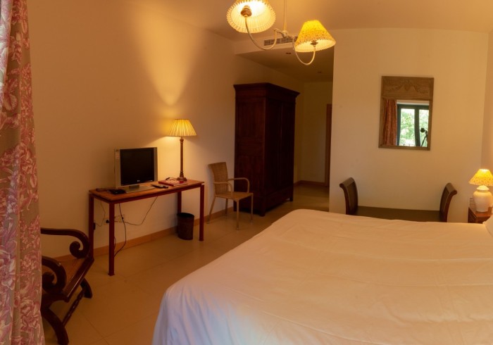 Habitación Familiar Premium con más espacio para tu descanso y balcón privado para disfrutar del entorno y desconectar al aire libre. Dispone de cama extra grande de 1,80 m, baño con bañera para tus momentos de relax, aire acondicionado, Wi-Fi gratuito y tensión eléctrica de 220-240 voltios.